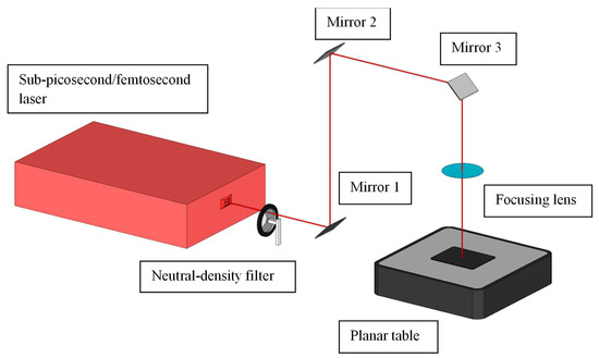 An upper limit for the highest usable frequency is given by the interaction of the generated plasma with succeeding laser pulses, since this will distort or shield the laser beam [16]. A successful application of the pulse repetition rate in the range of 100–400 kHz in our research enables the ultrashort lasers to meet industrial demand when it comes to processing speed. Considering all of the abovementioned observations, a sub-picosecond laser would allow better parameter control in micromachining processes and more predictable results, while maintaining the advantages of the femtosecond laser micromachining.