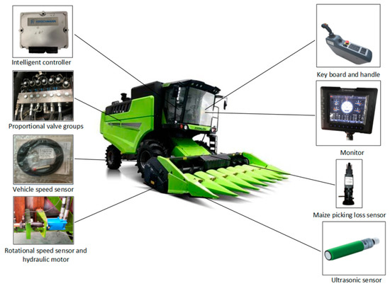 The working parameters of a maize harvester are coupled, and they mutually influence each other. With the development of large-scale and intelligent maize harvesters, it has become increasingly difficult for operators to observe harvest losses, determine the causes of such losses, and adjust the working parameters relying solely on their hearing and vision. This also affects the operating efficiency and harvest quality of the maize harvesters [1,2]. In China, the present grain harvest rate only accounts for 5–6% of the maize planting area, and maize remains mostly harvested by ear [3]. However, this approach has some problems, such as unsuitable agricultural machinery and agronomy, and the planting mode is not unified. This has led to ear loss and poor stability and adaptability of maize harvesters. According to statistics, maize picking loss rate is 75.28% of the total loss rate and is the main component of losses [4,5]. The maize picking mechanism is the core component of a maize harvester, and its performance directly affects the loss and damage of ears [6,7,8]. Thus, an intelligent control system for the maize picking process should be designed to ensure the maize harvest quality.