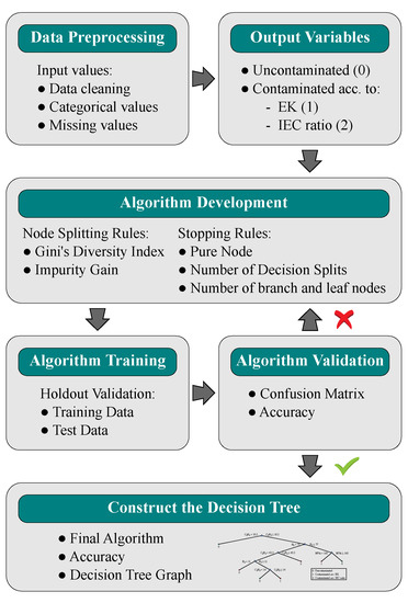 According to [20,23,25], a decision tree (DT) classifier is easy to interpret because the output is a set of conditional if-then tests of the input data. In addition, it is easy to train, and it works better than other ML techniques. The accuracy of the results obtained in these studies was better than that of those obtained with the DT algorithm.
