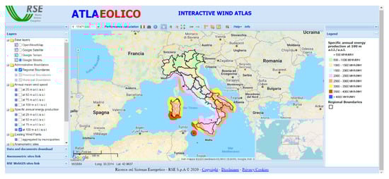 - ATLAEOLICO. Available online: https://atlanteeolico.rse-web.it/ (accessed on 21 September 2020).