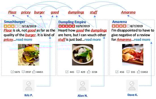 To examine the proposed model performance, we built a new dataset extracted from the open Yelp dataset (https://www.yelp.com/dataset) that includes interactions on post content and users. We selected 300 posters (users) from the downloaded dataset and removed two users whose attributed data are missing. Then, the 298 user items and their posts were collected. The collected data consisted of 23,701 posts published by the 298 users. Finally, each post was labeled into one activity type over 14 types, which are “Food”, “Beauty&spa”, “Entertainment”, “Travel”, “Shopping”, “Service”, “Sports”, “Health”, “Car”, “Nightlife”, “Pets”, “Education”, “Religious” and “Mass media”, and the dataset was built.