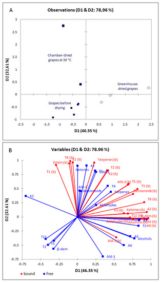 - Franco, M.; Peinado, R.A.; Medina, M.; Moreno, J. Off vine grape drying effect on volatile compounds and aromatic series in must from Pedro Ximénez grape variety. J. Agric. Food Chem. 2004, 52, 3905–3910. [Google Scholar] [CrossRef] [PubMed]