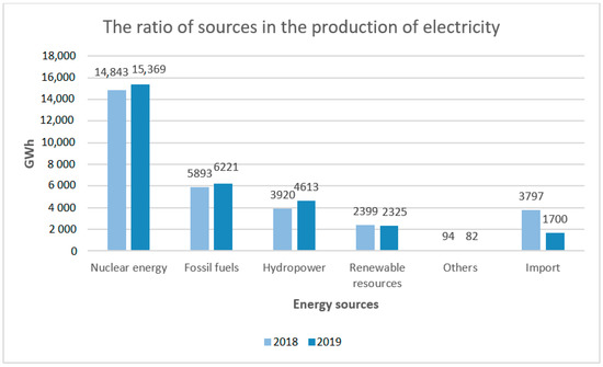 Table 3). More than half of the electricity supplied (55%) comes from nuclear power, about a quarter (26.9%) from fossil fuels and less than a fifth (18%) from renewable energy sources (RES).