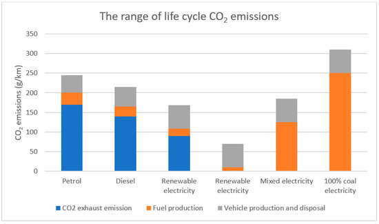14] In order to calculate an EV’s impact on the environment, it is necessary to consider the energy mix that is characteristic of the country. Emissions from the manufacture and disposal of a vehicle are higher for an EV than for an internal combustion EV (ICEV) [