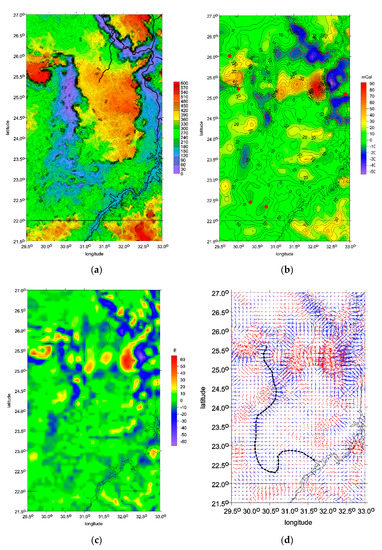 3.1. Results: Gravity Aspects and Magnetic Anomalies for Egypt