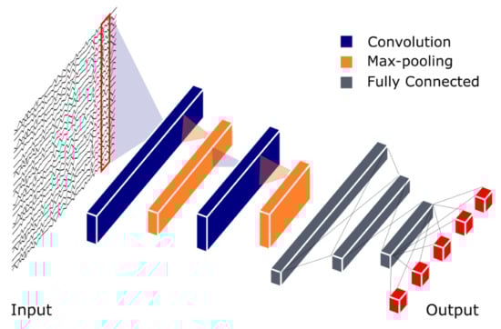 The first CNN was created to mimic the human visual system. In the visual cortex, simple and complex cortical cells break down visual information into simpler representations, so that it is easier for the brain to perceive and classify the image [,]. In an analysis of multiple light recordings, a typical CNN model comprises three main layers: convolutional, pooling, and fully connected, as depicted in Figure 2. In this model, an input data is first broken down by learned filters at the convolutional layer to extract important features, and feature maps are created as outputs. These feature maps contain different kinds of information about the data characteristics []. The pooling layer follows immediately after the convolutional layer, and it is responsible for reducing the feature map dimension. By doing so, the feature map complexity is reduced, and the visual information is broken down further. Another desired effect of this architecture is the reduction of overfitting []. Multiple convolutional and pooling layers can be incorporated in a model to make it “deeper” and increase its recognition ability to classify complex images. After a series of convolutional and pooling layers, the resulting feature map is flattened into a single list of vectors before it is fed to the fully connected layers, which establishes connections between output and input via learnable weights []. The superiority of this architecture was first demonstrated in image recognition and classification by Krizhevsky et al. [], where their proposed CNN model was awarded the top five award in an image classification competition, known as ImageNet Large Scale Visual Recognition Competition (ILSVRC-2012).