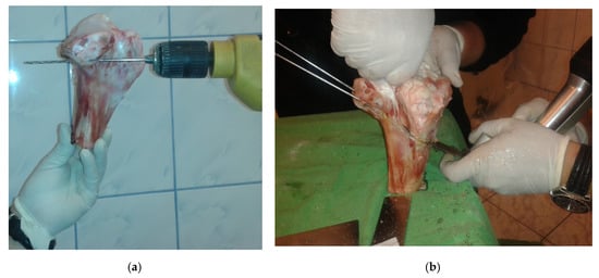 - Sisljacic, V.; Jovanovic, S.; Mrcela, T.; Nikolic, V.; Radic, R.; Wertheimerc, V.; Tanja Kovac, T.; Mrcela, M. Applicability of bovine tibia as a model in research on various osteosynthesis techniques. Period. Biol. UDC 2010, 112, 59–62. [Google Scholar]