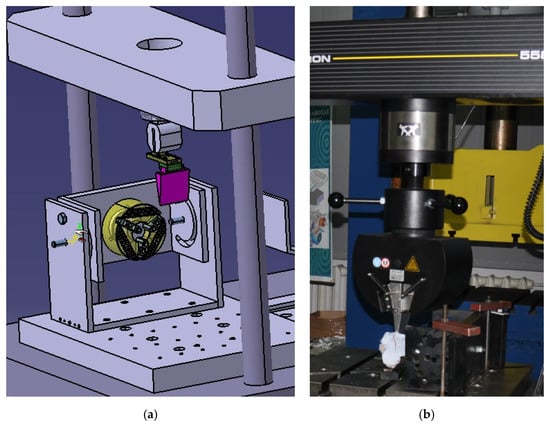 This specialized stand was mounted on the universal traction, compression, and buckling testing machine Instron 5587. It has a maximum load capacity of 300 kN and is controlled by hardware and software via the digital signal processor (DSP) interface and the Bluehill 2.0 specialized software.
