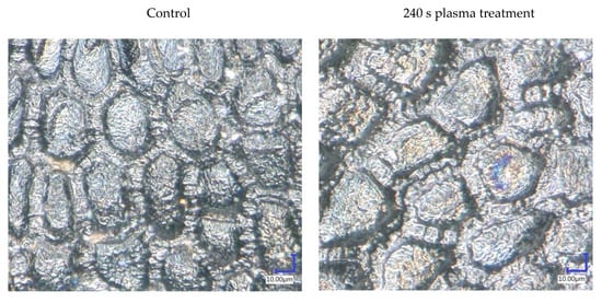 The morphological structure of the seeds before and after plasma treatment is presented in Figure 2.