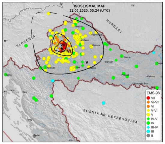 The authors wish to thank to Ines Ivančić, Ivica Sović (macroseismic fieldwork) and the Croatian Seismological Survey, Department of Geophysics, Faculty of Science, University of Zagreb for the support with this study. The support is gratefully acknowledged. Copyright permission for using Figure 1 [19] obtained through Copyright Clearance Center’s RightsLink® service (order number: 4965220553234).