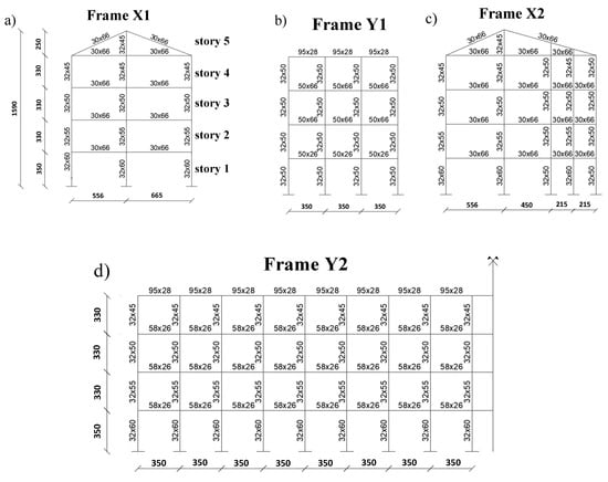 | Column type 1 | 2𝜙20 + 5𝜙14/2𝜙20 + 5𝜙14 | 𝜙6/10 mm (2 leg stirrups) | 2𝜙20 + 5𝜙14/2𝜙20 + 5𝜙14 | 𝜙6/12 mm (2 leg stirrups) |