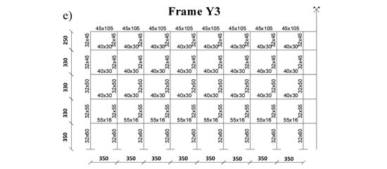 | Column type 3 | 2𝜙20 + 5𝜙14/2𝜙20 + 5𝜙14 | 𝜙6/12 mm (2 leg stirrups) | 2𝜙20 + 5𝜙14/2𝜙20 + 5𝜙14 | 𝜙6/12 mm (2 leg stirrups) |