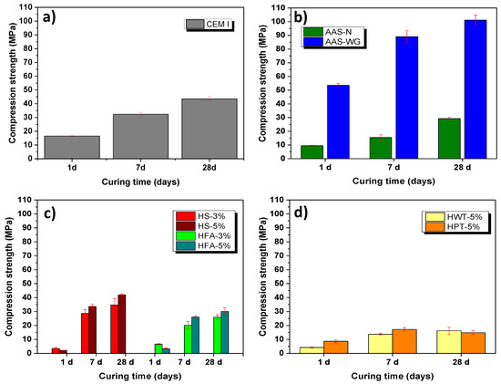 - Silicate-activated slag systems (AAS-WG) present the best mechanical performance, but hybrid mortars present an important alternative, obtaining competitive results.
