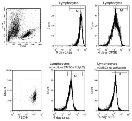 3.5. Impact of CMSCs on Lymphocytes Proliferation