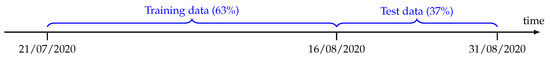 Usually in machine learning the whole dataset is splitted into at least training and test data. In this paper the dataset consists of 63% training data (regarding frequency of AEs) and 37% test data both including all 360 pots from all potrooms. It was decided to differ from the well-known 80/20 splitting to have more data for testing, at least half a month. The splitting is shown in the timeline in Figure 2. It is confirmed that in both time intervals the process and the technical state was not altered.