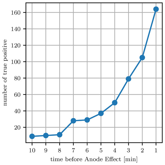 In this paper a classification model was trained that is able to predict AEs at least 1 min in advance. It was shown that time series features/characteristics can improve the model’s performance significantly. Since AEs occur rarely and a time base of 1 min was chosen, the dataset was extremely imbalanced. A combination of undersampling and cost-sensitive algorithms was proposed to solve this problem. The F1 score of the best model, namely a Random Forest Classifier is about 29.3%. A post analysis showed that disabling removing false positives if the prediction is up to 30 min in advance and disabling the model during events can increase the F1 score to 32.4%. Nevertheless in comparison to Reference [16] the F1 is low and needs to be improved. Including a low frequency and high frequency filtered noise signal, which will be available in future may improve the score. In future also live tests should be performed to prove if the lead time is sufficient and in general which actions like alumina feeding or beam downward movements are promising to prevent anode effects. In addition it needs to be examined if the amount of false positive are detrimental for the pot’s condition. For example a pot might be in an underfeed phase, right before turning into overfeed phase. An additional feeding to prevent the anode effect might not create any disadvantages, for example, due to sludge accumulation. But still there are open questions. Like Mulder et al. [5] said “a cell having AEs is synonymous to having a problem”, this would mean that preventing AEs only does not fix the root cause. However the symptoms of harmful PFC gases and reduced energy and current efficiency may be avoided for the most part.
