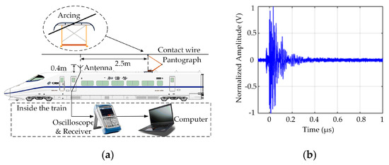 - Ma, L.; Wen, Y.; Marvin, A.; Karadimou, E.; Armstrong, R.; Cao, H. A Novel Method for Calculating the Radiated Disturbance from Pantograph Arcing in High-Speed Railway. IEEE Trans. Veh. Technol. 2017, 66, 8734–8745. [Google Scholar] [CrossRef]