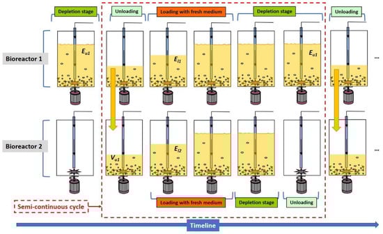 A diagram showing the operation of two bioreactors working serially is depicted in Figure 1, where the process involved the following operations: