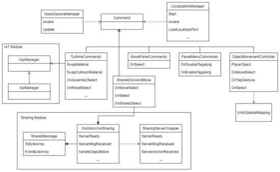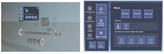 In order to implement the proposed system, it was necessary to use different software and hardware, both for the development of the application and for its execution and visualization. Specifically, the proposed IAR application was developed using two Microsoft HoloLens first-generation smart glasses. For most of the development of the application, Unity 2019.3.3 [58] and Microsoft HoloToolkit were used to implement 3D model interaction and visualization. HoloToolkit provides certain features like gesture recognition and built-in buttons that simplify the creation of interaction events with the 3D model.