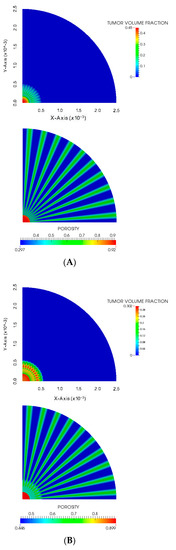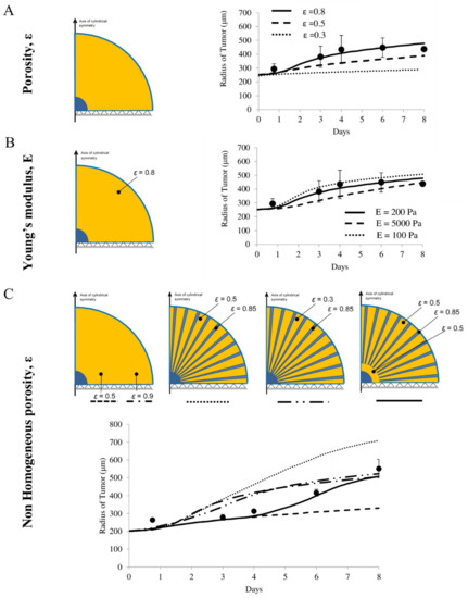 - Santagiuliana, R.; Pereira, R.C.; Schrefler, B.A.; Decuzzi, P. Predicting the role of microstructural and biomechanical cues in tumor growth and spreading. Int. J. Numer. Methods Biomed. Eng. 2017, 34, e2935. [Google Scholar] [CrossRef] [PubMed]