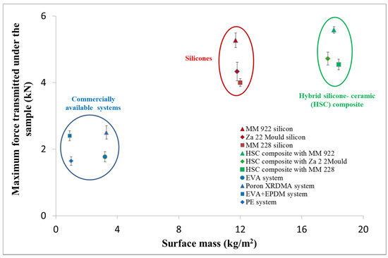 | No. | Composition of Samples | Surface Mass (kg/m2) | Maximum Force Transmitted under the Sample (kN) |