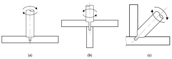 Types of FSW joint: (a) Butt FSW; (b) T-joint FSW; (c) fillet joint FSW.