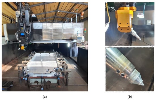 The benefits and advantages of FSW include high mechanical strength (around 90% of the base material) due to low distortion and residual stress as a result of welding with a lower heat input compared to conventional fusion welding and high-quality joints without defects such as pores and cracks []. FSW is also used to join lightweight alloys (Al, Mg, and Ti alloys), dissimilar materials, and materials that are difficult to join using conventional welding techniques. FSW is economical because it does not require consumable equipment such as filler metals and inert gas and it is eco-friendly because it does not emit harmful rays or substances, and the process can be standardized and automated by reducing the need for skilled welders. The disadvantages of FSW include exit holes after withdrawing the rotating tool, difficulties in joining complex 3D curved shapes, and need for backing plates to withstand the frictional pressure at the back of the joint. In addition, FSW is only used to join light metals or low melting metals due to the limitation of tool materials. Because of these characteristics, FSW has been mainly applied to the automotive industry in the past, but as its limitations have been supplemented through continuous research and development, FSW is now applied to a wide variety of other fields such as railways, military, aerospace/aviation, and shipbuilding [].