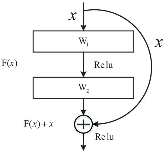 Assuming that the input of a forward neural network is x, the dimension is , and the expected output of the network is . The residual structure can be realized by a forward neural network and a skip connection. When the number of input and output channels is the same, the dimension of is also . A skip connection means that one or more layers of the network are bypassed. A skip connection performs only one identity mapping and adds its outputs to the outputs of stack layers.