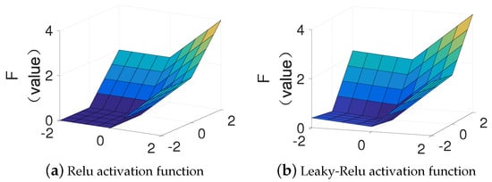 In the network structure of MSA-Resnet, nine multi-scale attention residual blocks are used. Forty convolution cores are used in the first three blocks, 60 convolution cores are used in the forth to sixth blocks, and 80 convolution cores are allocated in the last three. The first convolution layer and each output part of multi-scale attention residual block is activated by an activation function Leaky-Relu. Relu and Leaky-Relu [] are shown in Figure 5: