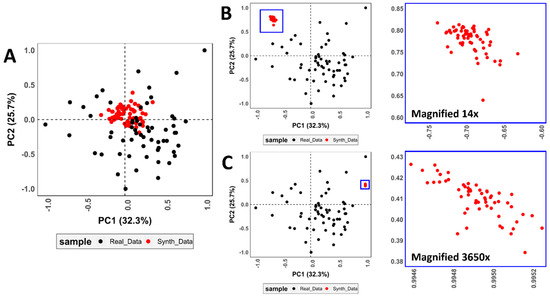 p < 0.05). Some algorithms are also seen to affect the normality of sample distributions, creating distortion that is reflected in increased sample skewness. Nevertheless, these distortions are still unable to modify the general magnitude of similarities between synthetic and real data.