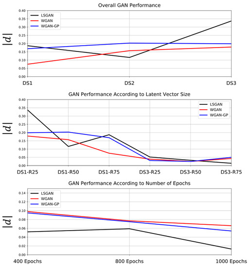 LSGAN appeared to be the model least affected by dataset size, producing the most realistic distributions in each of the cases (