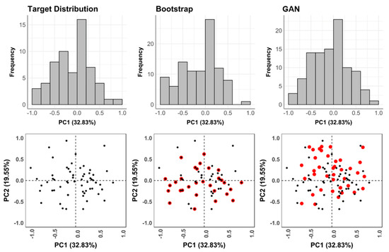 If GAN performance were to be compared with more traditional augmentation procedures, such as bootstrap, GANs can be seen to smooth out the distribution curve (