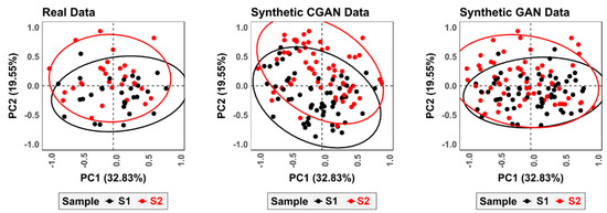 Figure 9). When using GANs to augment each of the samples separately, however, the generated data is arguably truer to the original domain. This is not to say, however, that CGANs are unable to augment feature spaces successfully. With the right configuration, CGANs are likely to reach similar results to traditional GANs. This, however, goes beyond the scope of the present study.