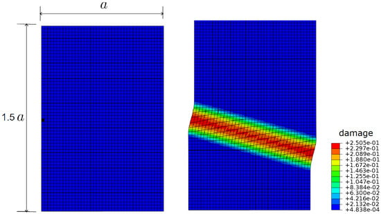 The model is implemented into a special user element subroutine so-called UEL in ABAQUS software, where the software is used solely as a solver and a visualizer. For the plane strain analysis, 2D four noded quadrilateral elements with bilinear shape functions are used. Microdamage variable is implemented as an extra degree of freedom, in addition to the standard displacements ( and ). The parameters used in the simulations are provided in Table 1.