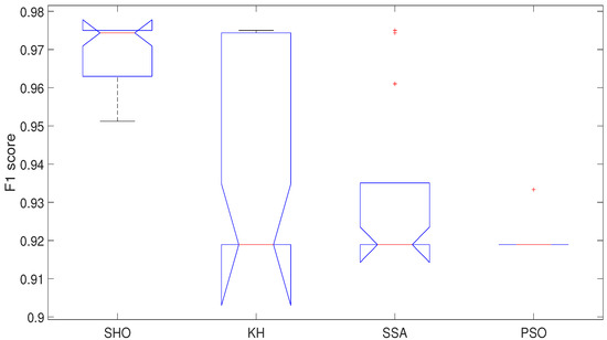 The SHO is a recent metaheuristic based on swarms which mimics the social behavior of these animals in nature. Among the vast amount of metaheuristics, SHO has shown great advantages in the exploration of diverse search spaces compared to other state-of-the-art approaches [23]. SHO has been implemented to solve a wide range of engineering problems like prediction of materials resistance during cutting processes [24]. SHO is used in combination with neural networks to improve the prediction ability of these algorithms. In [25], two complex engineering problems with restrictions like the design of bar armor and the design of multiple disk clutch brakes are solved. The results show the efficiency of SHO in solving these problems compared to other optimization algorithms like PSO and ACO. It showed its applicability in environments of a high dimension with a low computational cost. Ref. [26] implements SHO for design optimization in aerodynamic surface and optical buffer problems where the obtained numerical results are then compared with algorithms like Grey Wolf Optimizer, Genetic Algorithm, and PSO, among others. Likewise, the binary version of SHO has been developed and used to build wrapping approaches for feature selection in different sets of UCI data [27]. Moreover, SHO has been hybridized with other algorithms like PSO to improve its abilities to solve various engineering problems [28]. Recently, Ref. [29] implements an SHO version able to deal with multi-objective problems for the prediction of characteristics in gene selection through its combination with machine learning algorithms like SVM.