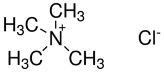 Quaternary ammonium salts (quats) (QAS) are one of the common economical IL compounds applied in industry []. Among their advantageous characteristics include having surface-active properties, bioactive, and possess anti-microbial activity [,]. Over the last decade, researchers have been investigating on this class of IL and found their improved chemical and thermal stability compared to imidazolium and pyridinium based ILs, their solvating properties and unique miscibility which can be utilized in specific applications [,,,,]. A typical QAS consists of a positively-charged nitrogen atom attached to four carbon atoms []. Figure 3 shows a typical structure of QAS, tetramethyl ammonium chloride.