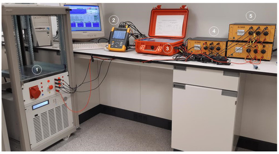 - Transducers: Voltage Hall Effect LV 25-P (LEM) with accuracy 0.9% [35], AC Current Clamps Fluke i5sPQ3, 5 A, accuracy 1% [36].