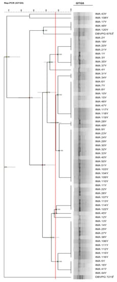 The reproducibility of fingerprints was assessed by comparing the fingerprinting patterns, obtained using DNA prepared from two separate cultures of the same five randomly selected strains (K. humilis IMA 22Y, 24, 27, 51 and 104). All pairs of duplicates were amplified in different PCR reactions and run in different electrophoresis gels. The average similarity coefficient from duplicates was calculated as described by Eriksson et al. (2005) [].