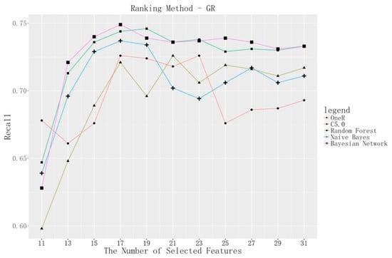 29]. More specifically, OneR is one of the simplest algorithms for use as a classifier, and its classification result can be used as a benchmark for others. Additionally, DT is simple to interpret and RF is an evolved version that performs better with large amounts of data in a short time. An advantage of the NB classifier is that it requires a small training dataset to estimate the statistical parameters necessary for classification, and BN is an evolved version for dealing with uncertainty and reasoning. Classification accuracy is estimated using ten-fold cross-validation. In this practical problem, we test a given classifier on several feature subsets, obtained from different ranking indices, using classic evaluation indices based on the determined operations of classification confusion matrix [
