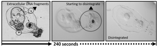 An example of a disintegration process; response of Asplanchna sp. lorica to commercial bleach treatment (2.5 %).