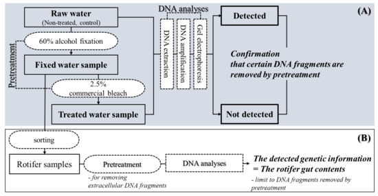Experimental designs. (A) Verifying applicability of pretreatment, (B) Application of pretreatment to rotifers.
