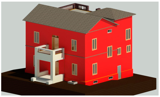 An HBIM from the architectural and the geometric documentation was created. The model of the building was created in Revit software (Revit, Autodesk, San Rafael, CA, USA, 2018) using architectural documentation drawings in 2D and incorporated geometric documentation products (3D point cloud) as an under layer. The model was generated by elevating each segment of the 2D plan to 3D. The properties of some materials were incorporated (such as wooden floor, etc.), from the existing library of parametric objects. Nevertheless, the ontology of most of the heritage buildings’ elements were created by incorporating information regarding the multidisciplinary documentation analysis, including historical data, structural assessment information and building materials documentation. In addition, BIM can incorporate semantic information related to physical and morphological characteristics such as building materials, stratigraphic information, etc. thus semantically enriching the structure’s elements.