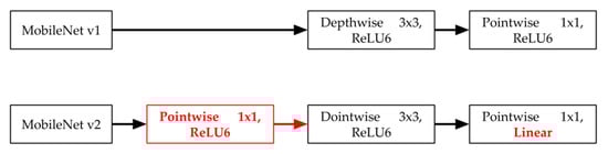 - Sandler, M.; Howard, A.; Zhu, M.; Zhmoginov, A.; Chen, L.-C. Mobilenetv2: Inverted Residuals and Linear Bottlenecks. In Proceedings of the IEEE Conference on Computer Vision and Pattern Recognition, Salt Lake City, UT, USA, 18–22 June 2018; pp. 4510–4520. [Google Scholar]
