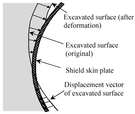 Displacement of the excavated surface.