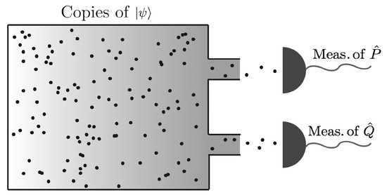 While in the past these two statements have often been mixed, they are now clearly distinguished as measurement uncertainty and preparation uncertainty relations. When we consider the quantities position and momentum, as in Heisenberg’s original argument, the well-known inequality states that it is impossible to prepare a quantum system for which both, position and momentum, are arbitrarily sharply defined. Operationally this is achieved by an apparatus that prepares many copies of a quantum particle in the same way, which is schematically illustrated in Figure 1. On one part of the ensemble, the position is measured and on the other part the momentum. From the statistical distribution of these two measurements, the preparation uncertainty can be determined. What is the correct way to interpret these distributions? While Heisenberg’s paper only presented his idea heuristically, the first rigorously-proven uncertainty relation for position Q and momentum P was provided by Kennard [2] in terms of standard deviations expressed as