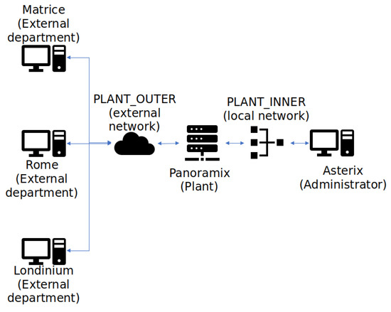 As previously stated, the practical assessment is designed by presenting a fictional enterprise to the students and asking them to adopt the role of a new security technician. The fictional enterprise is called Panoramix Pharma, and its main activity is the production of magical potions. However, some security problems have been encountered recently in the production plant, and the new technician is required by the company to solve those issues.