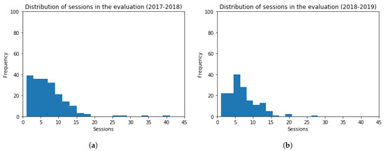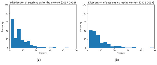 Histogram Graphs for the Number of Sessions in the Contents related to the Activity. (a) 2017–2018 (b) 2018–2019.