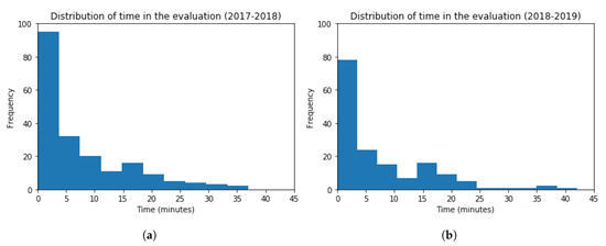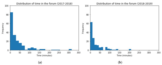 Histogram Graphs for the Time spent in the Contents related to the Activity. (a) 2017–2018 (b) 2018–2019.