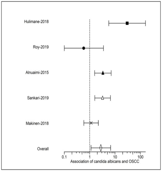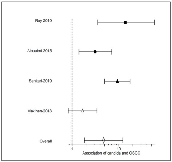 Forest plot summarizing the results of the meta-analysis for Candida and OSCC.