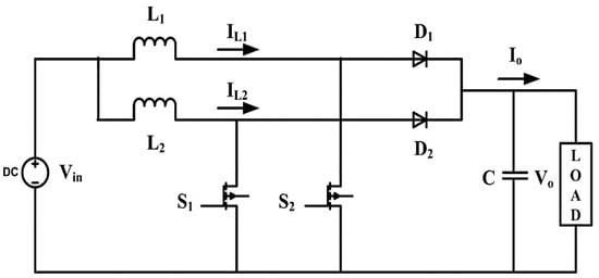 The IBC is shown in Figure 5. The IBC is interleaved by two structures and it performs two operations in tandem at a time. Hence, it is named as an interleaved converter. The IBC reduces the conduction losses and increases the conversion ratio. Thus, the efficacy of the system can be increased by saving energy [24].
